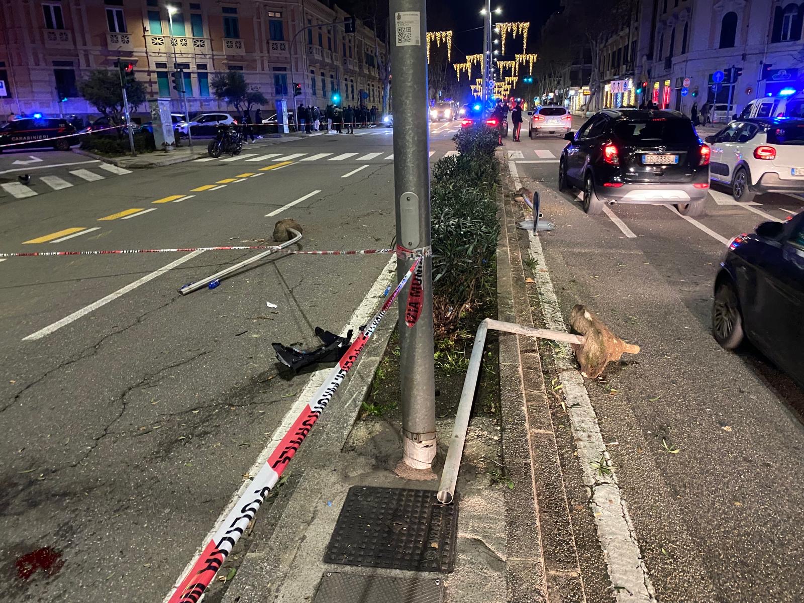 L’impatto è stato particolarmente violento e nello scontro i tre sono stati scaraventati per terra facendo un volo di diversi metri. Lo collisione tra i due mezzi a due ruote ha causato anche lo sradicamento di ben quattro pali della segnaletica.