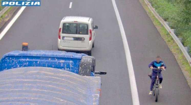 Gli agenti, valutata la gravità della situazione, hanno immediatamente bloccato il traffico e intimato l’alt al ciclista. L’uomo, però, ha proseguito la marcia fino alla più vicina area di servizio, dove ha abbandonato il mezzo nel tentativo di sottrarsi all’identificazione. È stato quindi raggiunto e fermato dagli operatori.